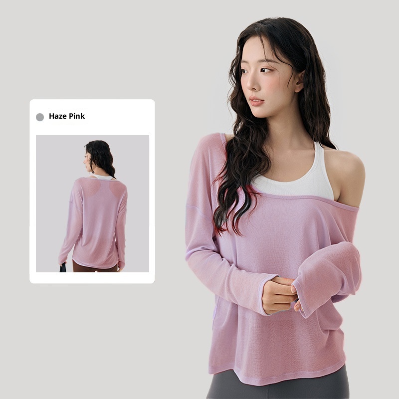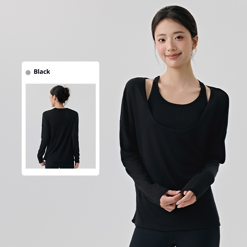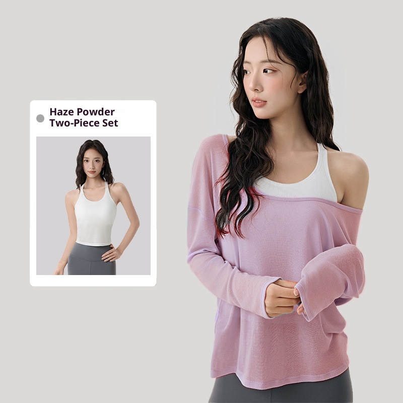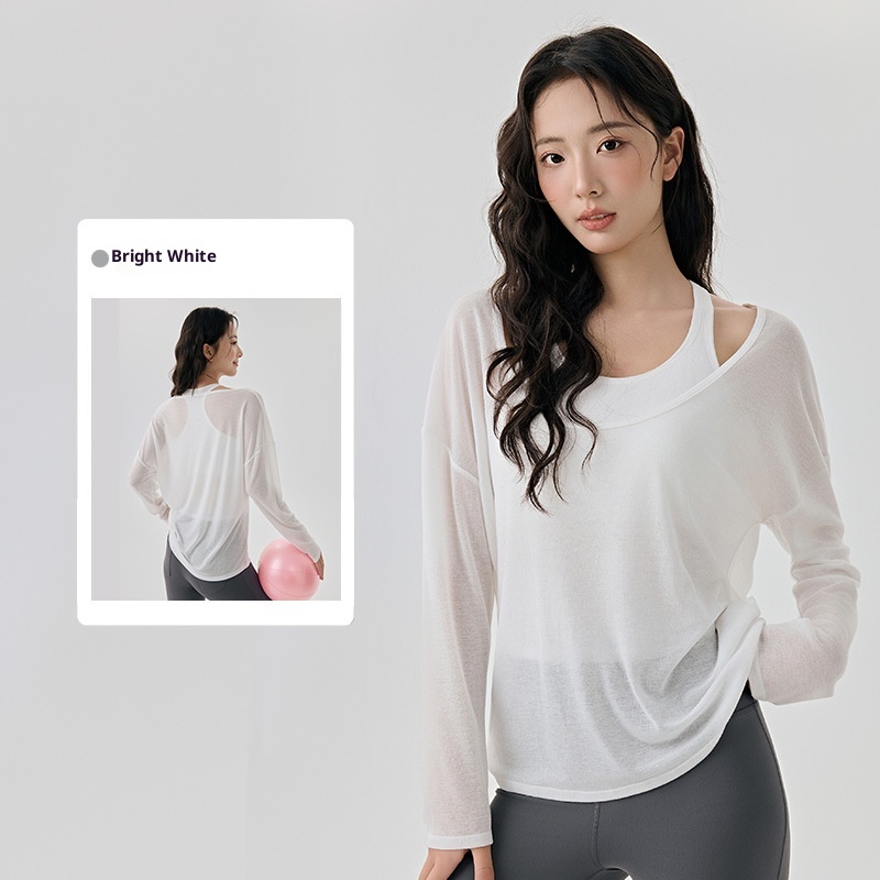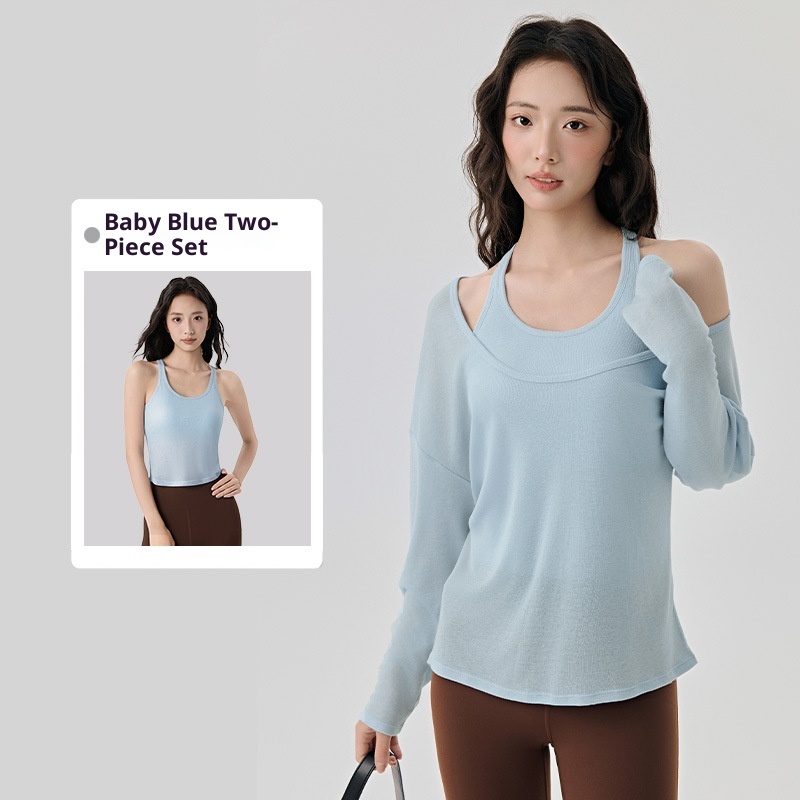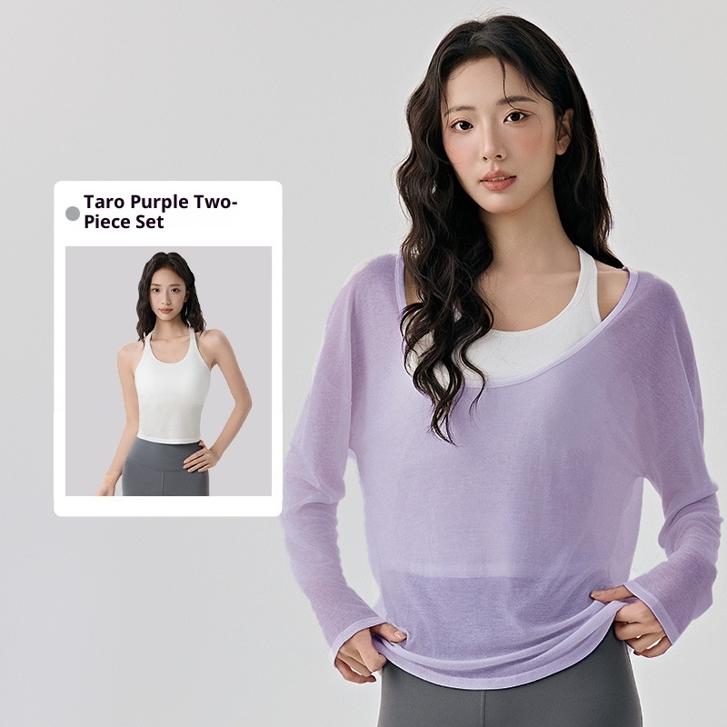 001 Yoga Suit For Women, High-End Layered Two-Piece Set, Breathable Long-Sleeve Top, Pilates Sports Vest With Chest Pads