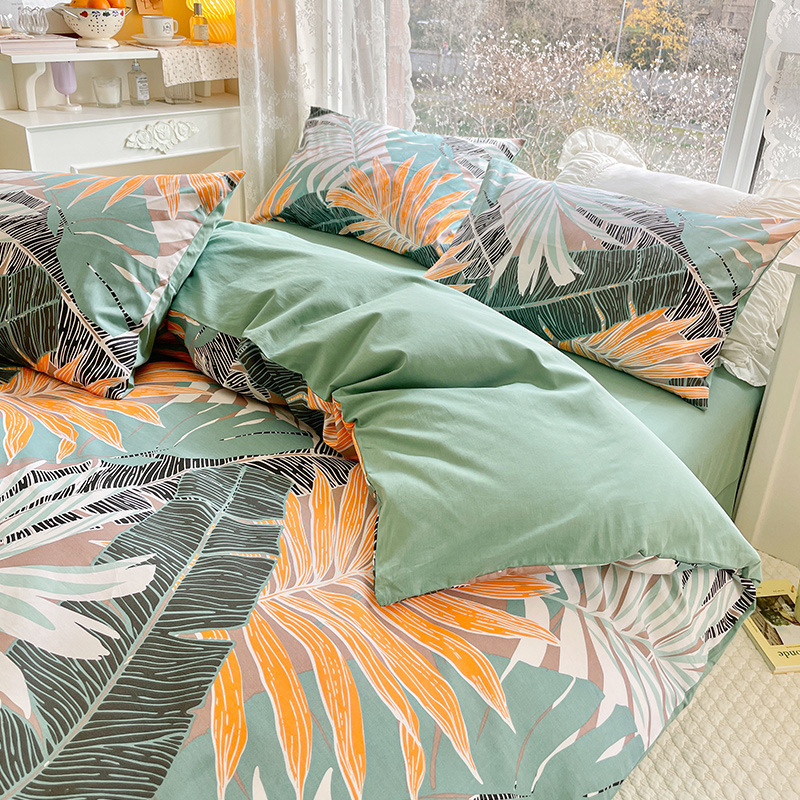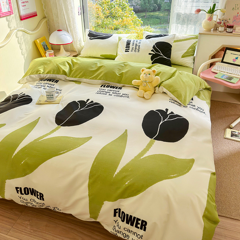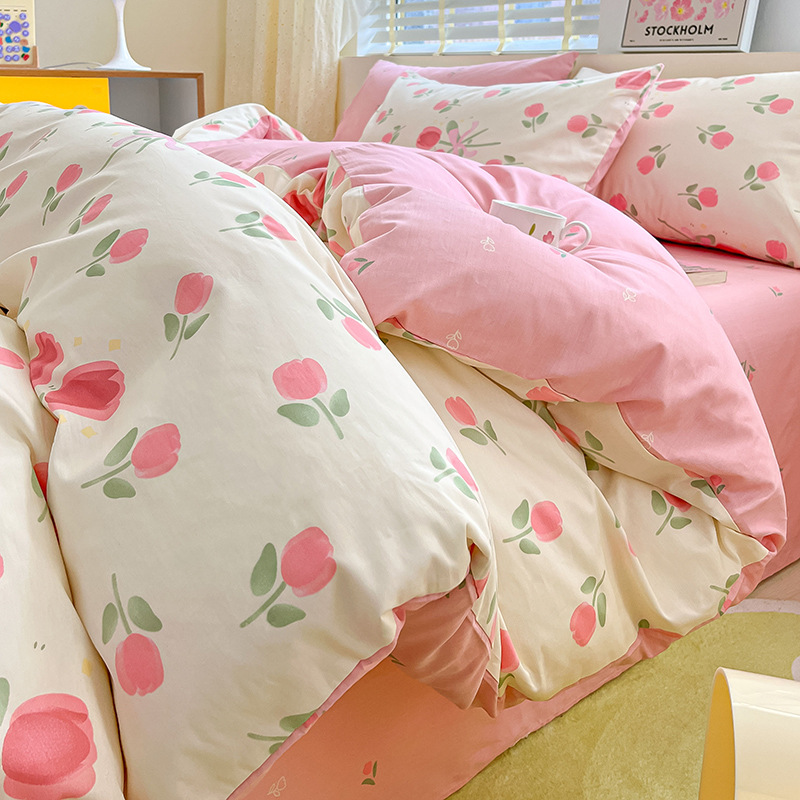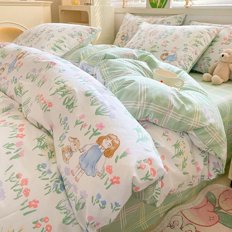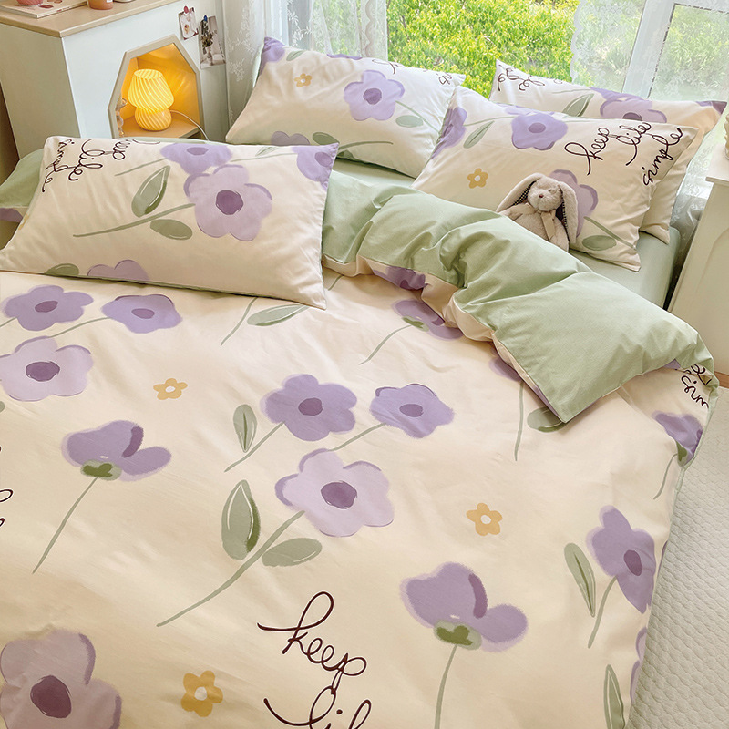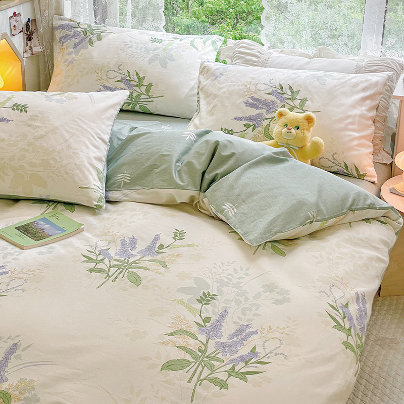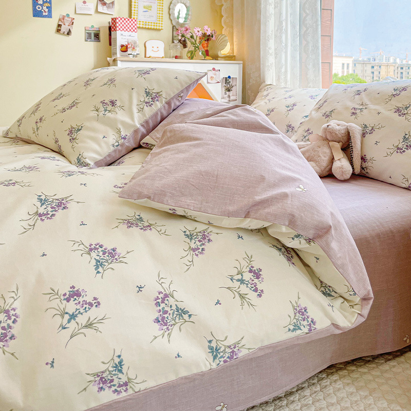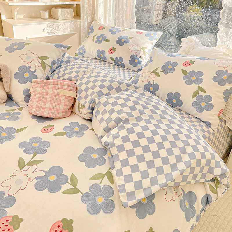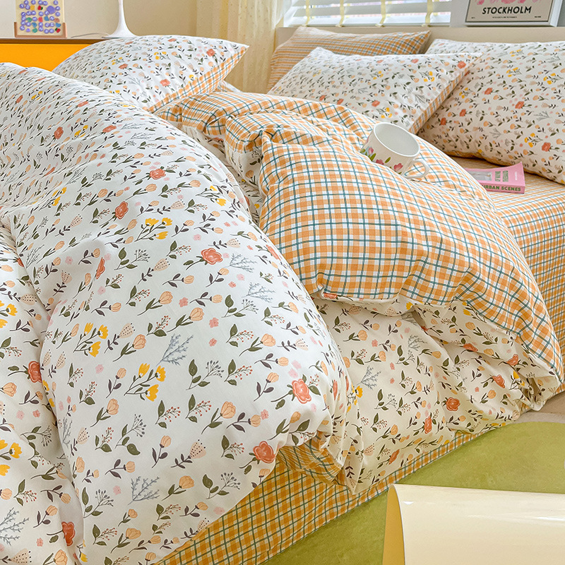 2023 New Spring and Autumn 60 Small Fragmented Cotton Four Piece Set Ins Style Pure Cotton Quilt Cover Fitted Sheet Bedding Set