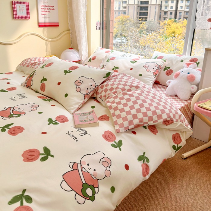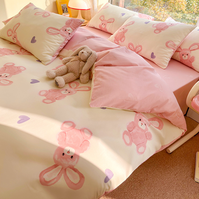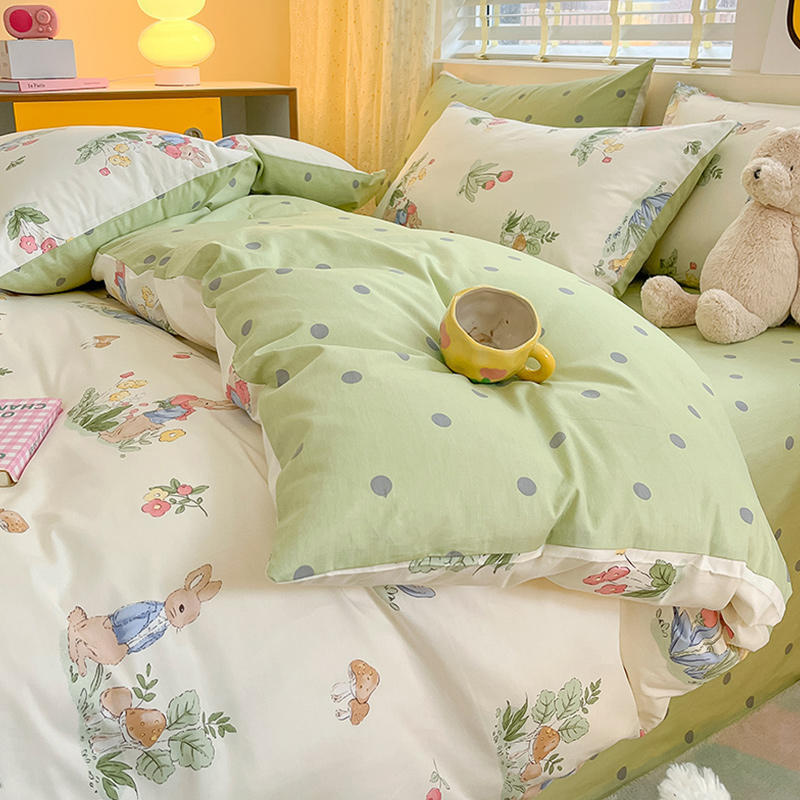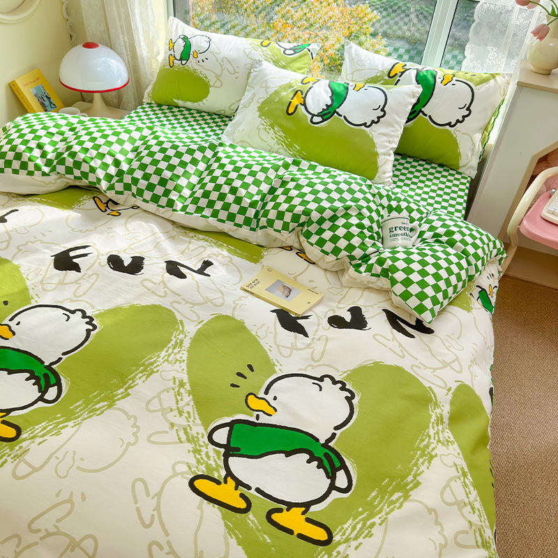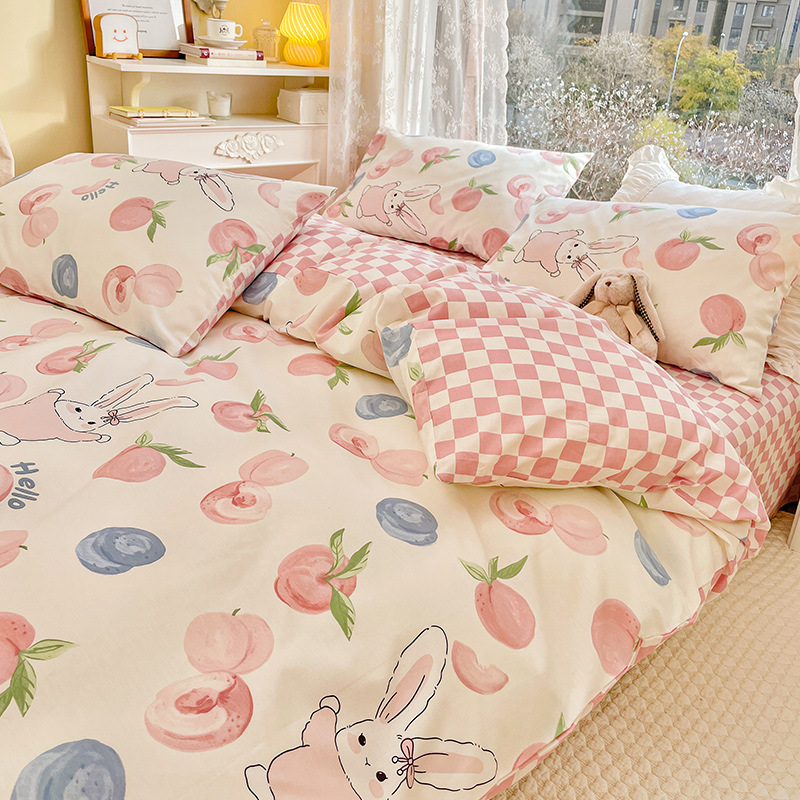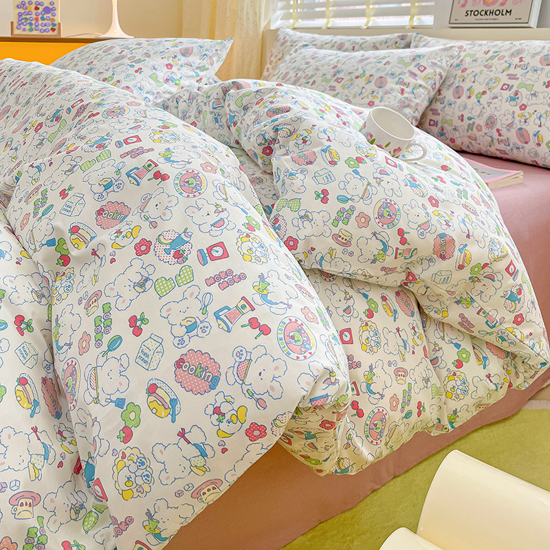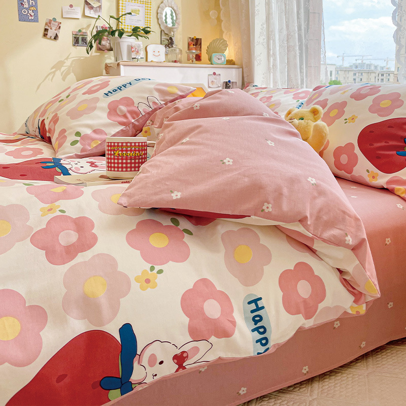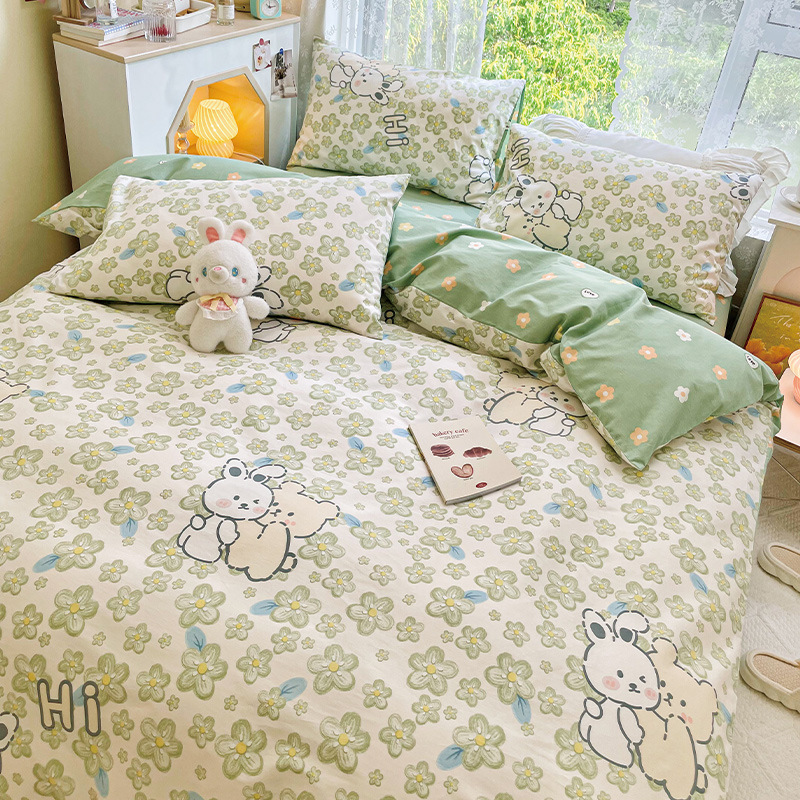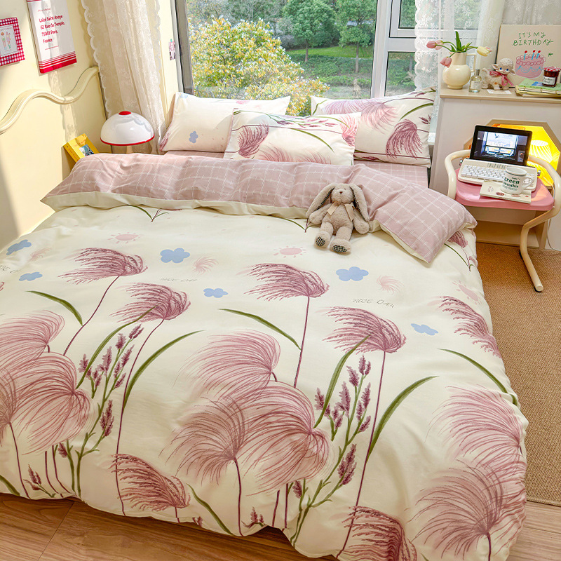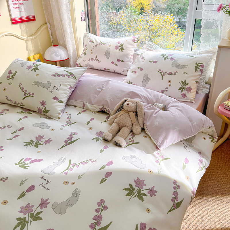 2023 New Spring and Autumn 60 Small Fragmented Cotton Four Piece Set Ins Style Pure Cotton Quilt Cover Fitted Sheet Bedding Set