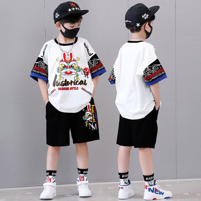 Boys' Summer Set 2023 New Korean Edition Children's Mid size Big Short sleeved Trendy Shirt Boys' Summer Two Piece Set