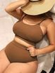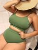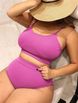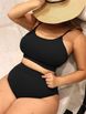 Νέο γυναικείο μαγιό μπικίνι με φαρδιά τιράντες και μονόχρωμο μπικίνι σε μεγάλα μεγέθη του 2024