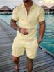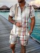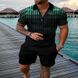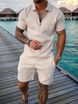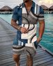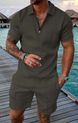 2025 Men's New Casual Color-Block Polo Zipper Collar Short Sleeve Set