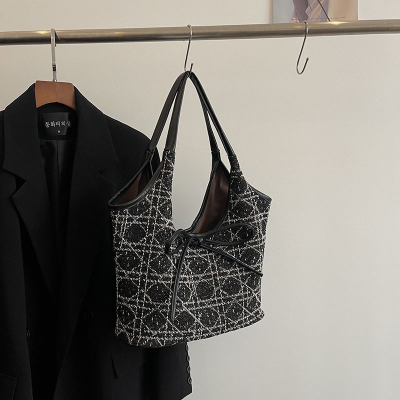 Fall/Winter 2025 New Zipper Shoulder Bag Women's Commuter Crossbody Bag Black Tote Bag Versatile