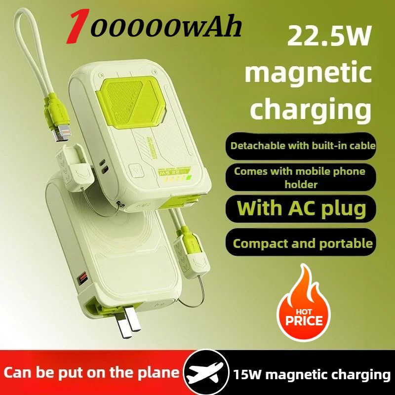 Magsafe Power Bank100000 mAh with Plug and Phone Holder 4-in-1 Multifunctional PD22.5W Wireless Fast Charging Power Bank