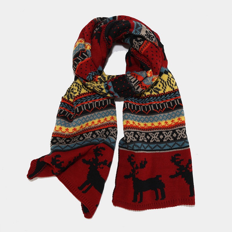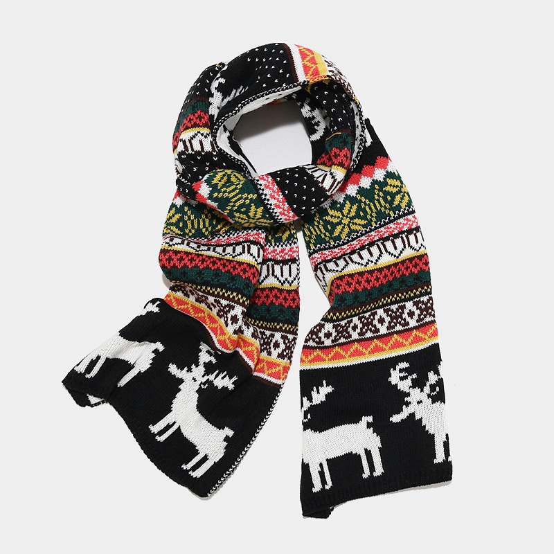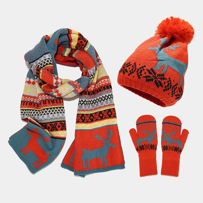 Christmas Elements New Elk Jacquard Knitted Hat, Scarf, Glove Set, Autumn and Winter Women's Warm 3-Piece Set