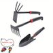 Versatile Garden Tool Set: Includes a wide shovel, hand cultivator rake, double-side tiller, and plant tools for digging, transplanting, and weeding. Durable and Sturdy: Made of high-quality materials, these garden tools are built to last and withstand heavy use. Comfortable Grip: The ergonomic handles provide a comfortable grip, reducing hand fatigue and making gardening tasks easier. Efficient Gardening: With these tools, you can easily and efficiently maintain your garden, keeping it healthy and beautiful all season long. Perfect Size: The 11"×9" size of these tools makes them easy to handle and maneuver in tight spaces. Slip handles take strains off your hands, the ergonomic design will minimize pressure in your wrist. Ideal for various tasks including digging, weeding, loosening soil, aerating, transplanting and etc. This gardening tools are light, easy to be taken inside home or outdoors. Versatile use easy to loosen soil and suitable for cultivation. You can use these for planting, weeding or scooping soil. It is very small and ultra-lightweight can carry to anywhere. Features - Color: Black. -Material: steel, pvc. Package Including 1 x wide handy shovel 1 x rake 1 x hoeing rake