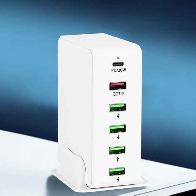 6 θύρες γρήγορης φόρτισης QC3.0 USB φορτιστής HUB, σταθμός φόρτισης 20W PD γρήγορος φορτιστής για iPhone 12 pro 11 iPad Tablet Samsung