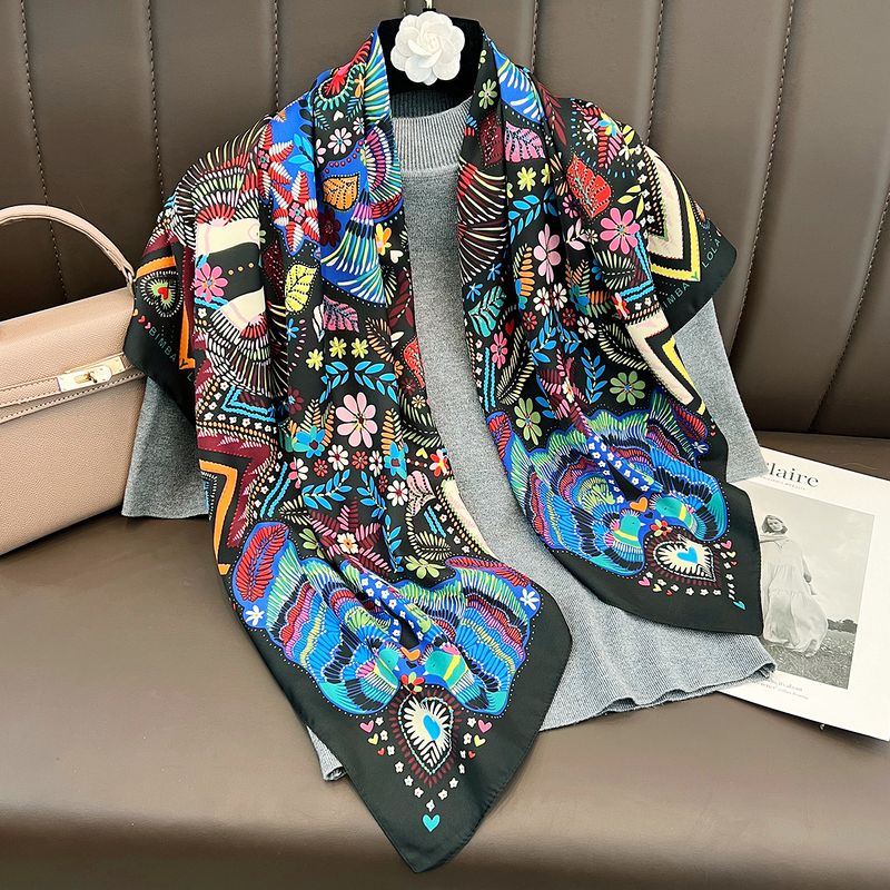 Spring and summer new ethnic style 90 simulation silk scarf women's Korean printed fashion shawl beach sunscreen thin shawl