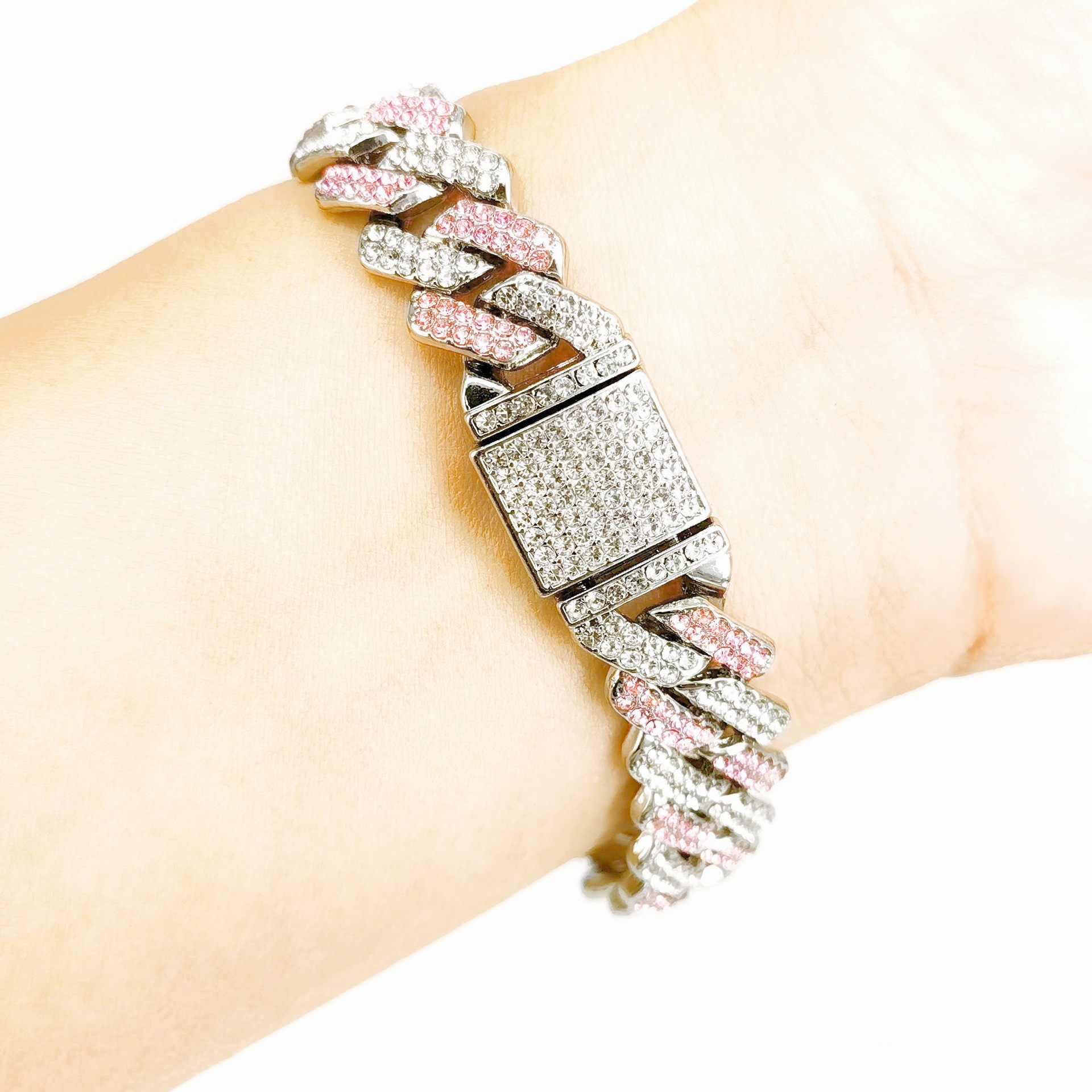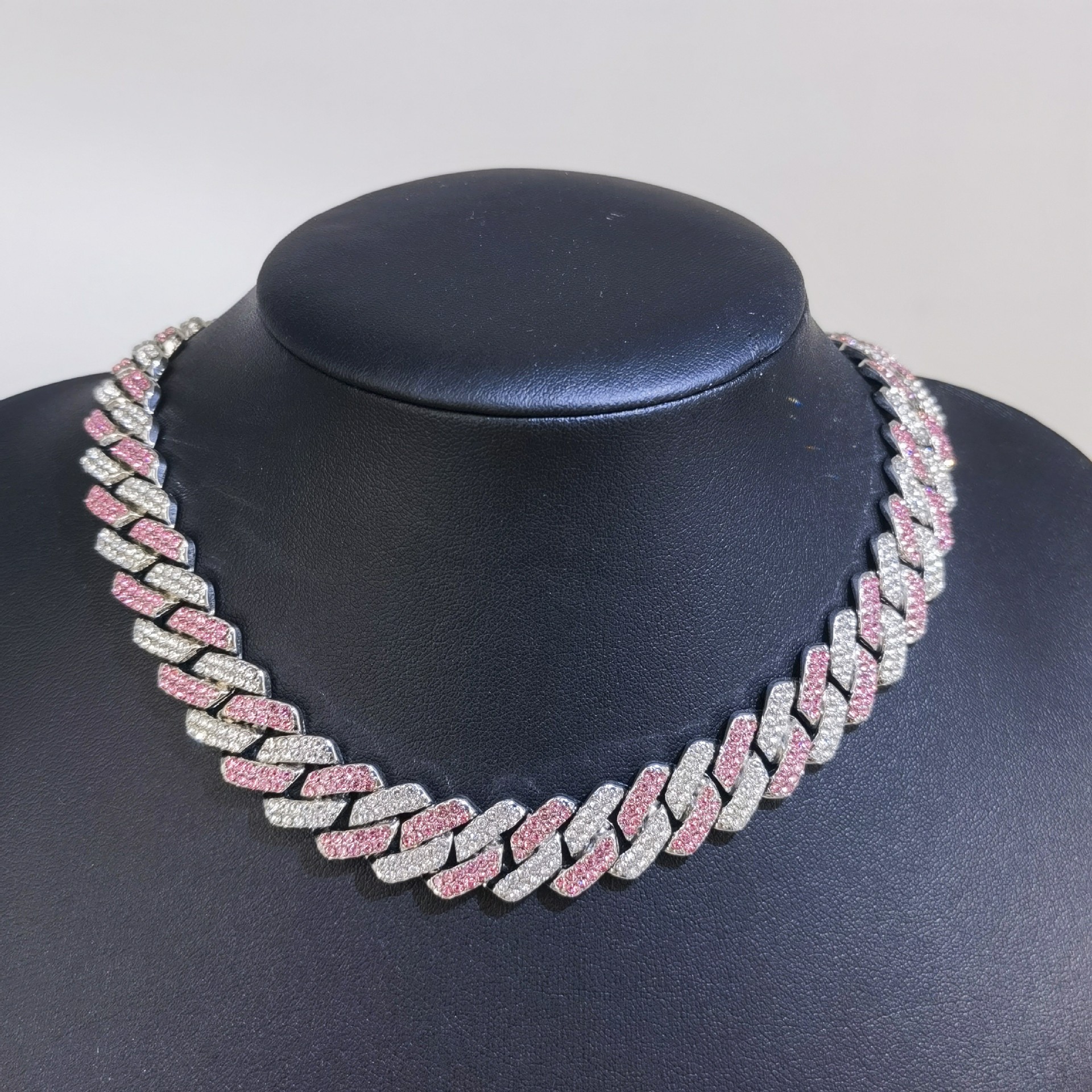 Alloy 14mm diamond powder diamond flip top men's and women's Cuban chain necklace design with hip-hop style