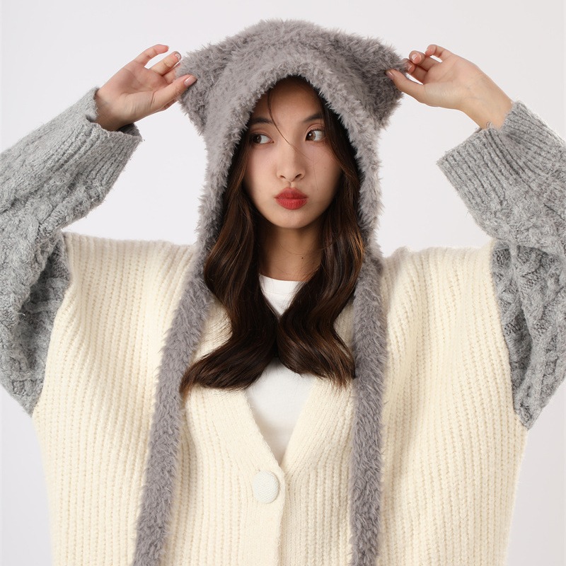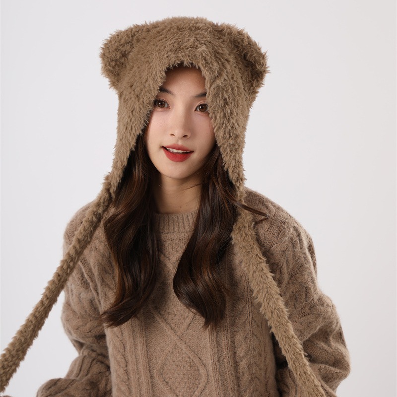 Φθινόπωρο και Χειμώνας Χαριτωμένη Μικρή Αρκούδα Λούτρινη Προστασία Αυτιών για Παιδική Κορεατική Έκδοση Ευέλικτη Ζεστασιά Διπλή Μπάλα Μαλλιών