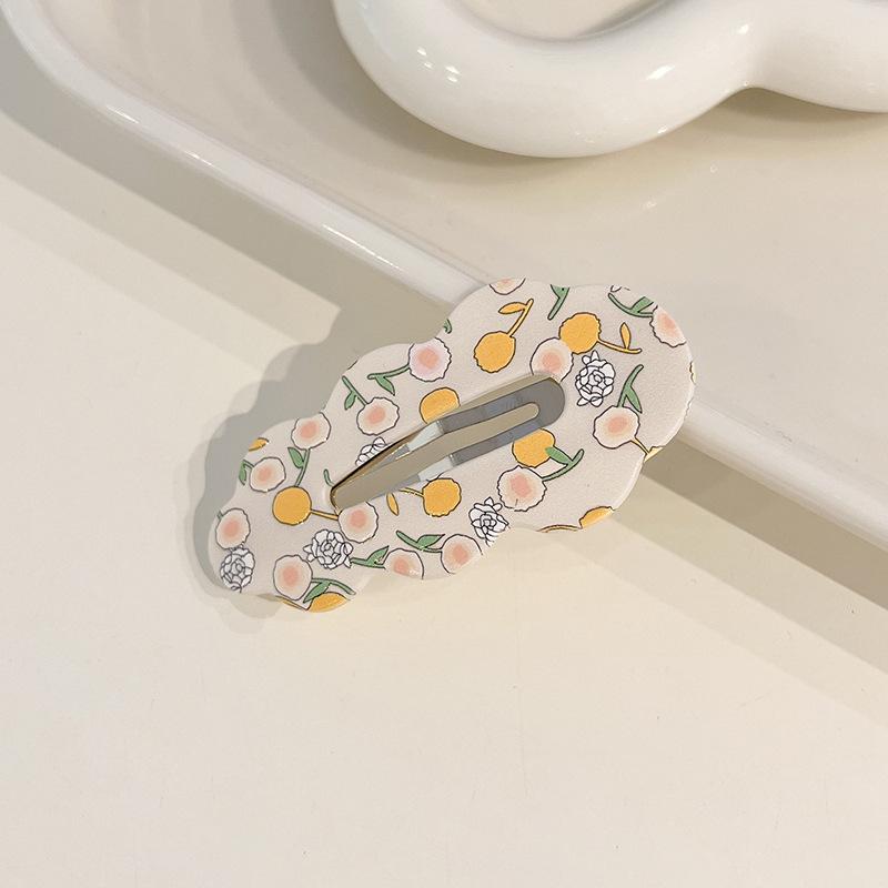 Adorable Cartoon Design:This hair clip features a cute cartoon design, adding a touch of sweetness and freshness to your look. It's perfect for summer wear. Versatile Use:Whether you're looking to tame your bangs, create a side part, or add a touch of style to your hairstyle, this BB clip has got you covered. Matched Set:This set includes a front and side hair clip, allowing you to create various hairstyles while maintaining a cohesive look. Korean Trendy Style:Inspired by Korean trends, these hair clips are popular among fashionable Koreans, making you a trendsetter yourself. Durable Material:Made from a durable material, these hair clips are designed to withstand daily wear and tear, ensuring long-lasting use. Plant Flower Element:The inclusion of plant flower elements in the design adds a unique and eye-catching touch, making it a standout accessory in your collection.