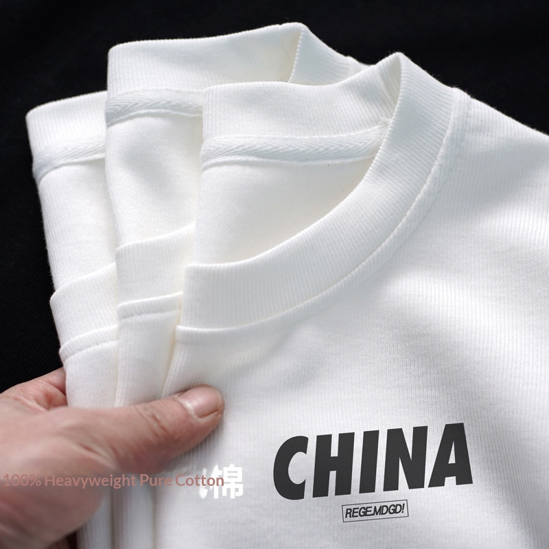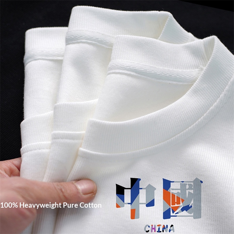 boy Boy Xinjiang Heavy Cotton T-Shirt Unisex Chinese Style National Short Base Shirt Ins Summer Plus Size Half Sleeve Trend