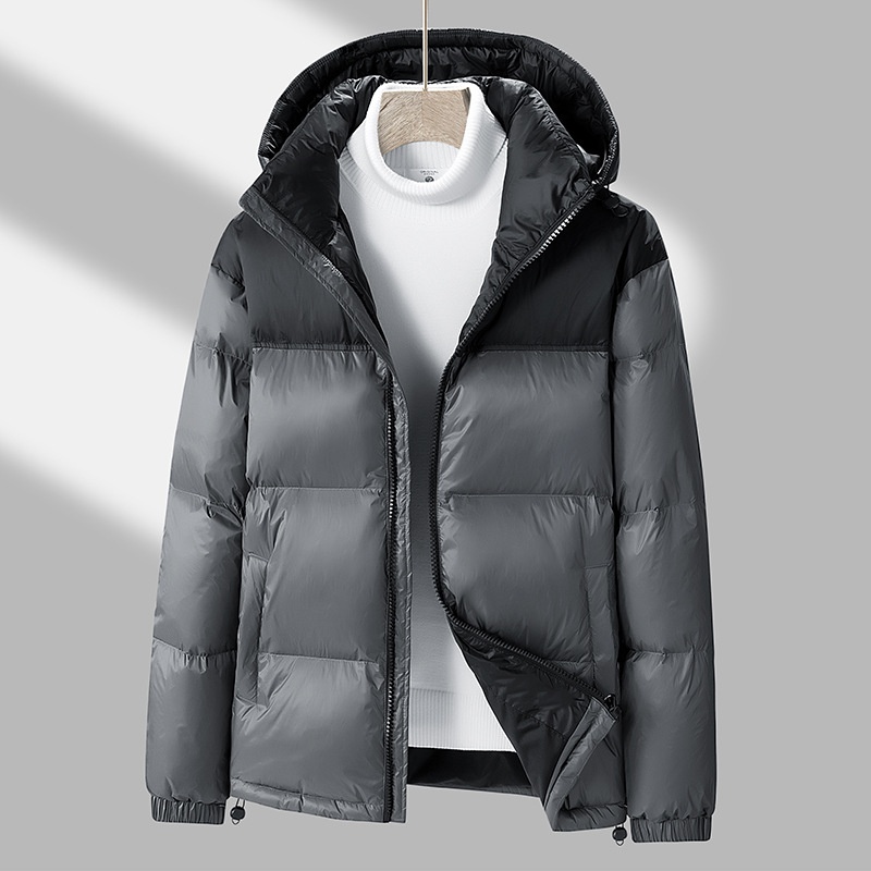 boy Winter New Men's Korean Style Color-Block Hooded Thickened Warm 90 White Goose Down Jacket Trendy Couple Cold-Resistant