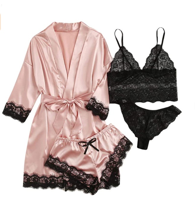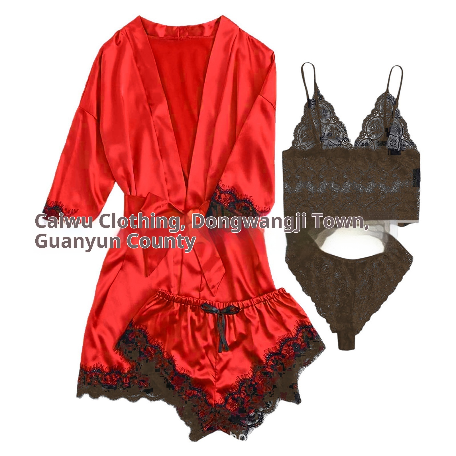ChicShe European And American Sexy Lingerie Cross-Border Trade Women's Pajamas Four-Piece Plus Size Nightgown Camisole Set