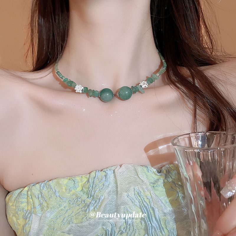 Chinese Style Color-Block Beaded Lotus Jade High-End National Trend Versatile Choker Niche New Necklace Jewelry