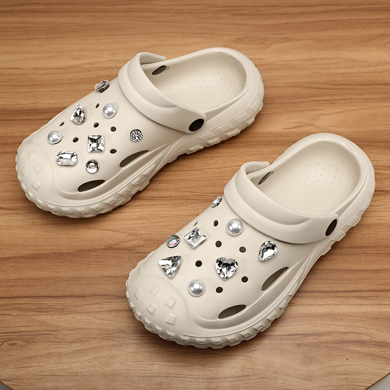 Γυναικεία παπούτσια Crocs 2024 καλοκαίρι, νέα, αντιολισθητικά, Baotou drag diamond, εξωτερική ένδυση, casual, παντόφλες EVA για την παραλία, με χοντρή σόλα και αντιολισθητική σόλα