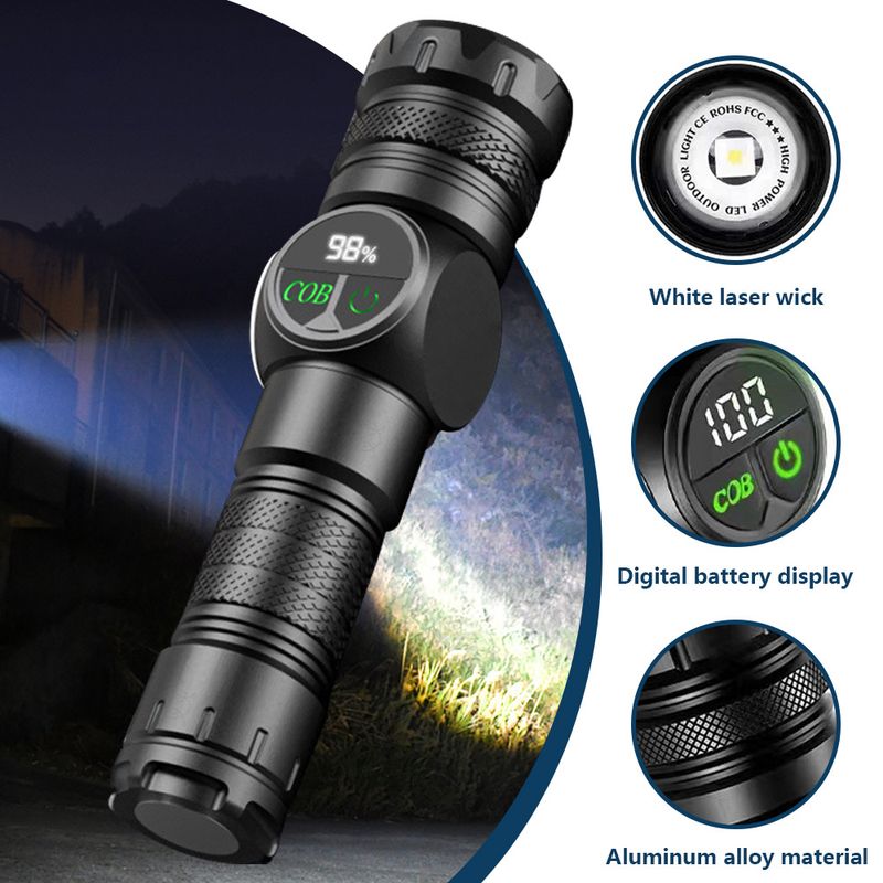 Cross-Border New White Laser Strong Flashlight Digital Display Multi-Function Side Portable Outdoor Emergency Light