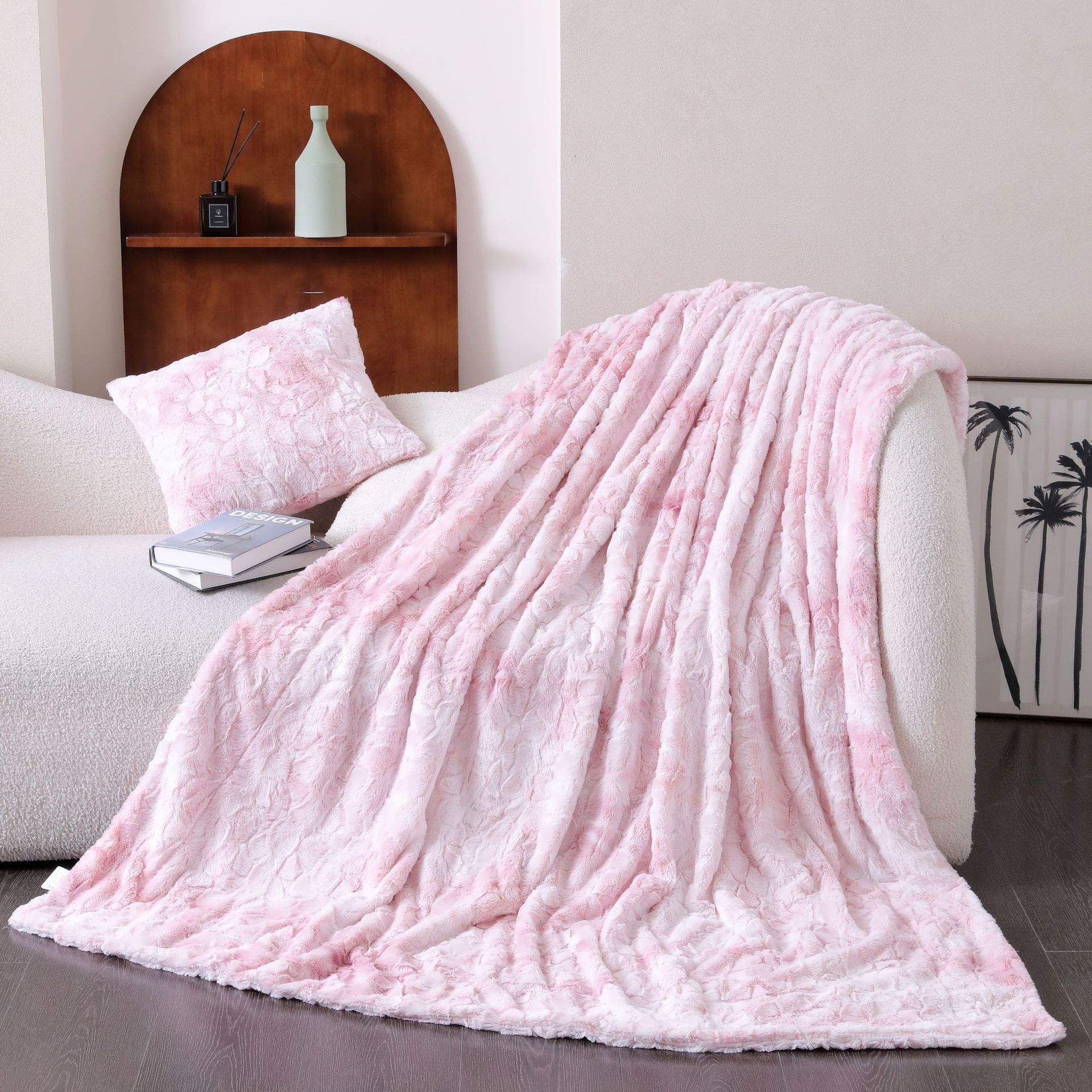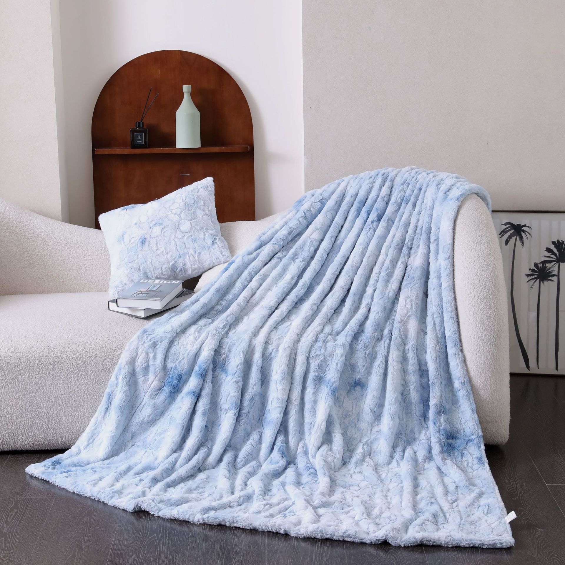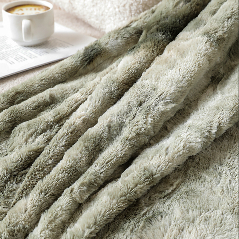 Double sided thickened lambskin blanket: A side PV velvet tie dye B side lambskin