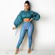 Women's Striped Print Drawstring Sexy Crop Top Long Sleeve Two-Piece Set