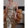 Γυναικεία Ρούχα Χρυσό Φόρεμα με Πούλιες, Βραδινό Φόρεμα Αρραβώνων, Υψηλής Τιμής Φόρεμα Νυφικού, Υψηλής Τιμής Πρωινό Φόρεμα Γάμου, Γαμήλιο Γλέντι