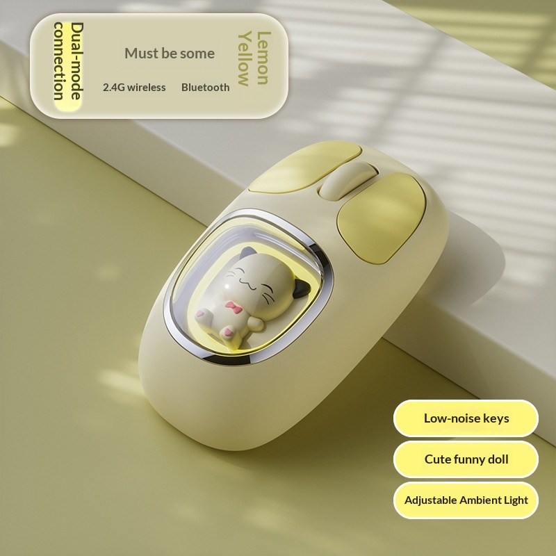 Brand:Y-FRUITFUL,Item Number:M94,Time to market:2024-3-23,Type:Optical Mouse,Mouse size:Ordinary mouse 100-120mm,Connection method with a computer:Wired + Bluetooth,Number of Buttons:3,Interface:USB,Does it support ergonomic design?:Support,working method:Optical,Long cable length:Wireless,Product Dimensions:11.8*6.8*4.5CM11.5,Product weight:0.151KG,Custom Printing:Sure,After-sales service:Storefront Three Guarantees,Package contents list:Standard Packaging - Manual - Data Cable,Color:Rouge Pink 2.4G Wireless Single Mode - Cute Doll, Lemon Yellow 2.4G Wireless Single Mode - Cute Doll, White Green 2.4G Wireless Single Mode - Cute Doll, Charming Purple 2.4G Wireless Single Mode - Cute Doll, Rouge Pink 2.4G Wireless + Bluetooth 5.2 - Cute Doll, Lemon Yellow 2.4G Wireless + Bluetooth 5.2 - Cute Doll, White Green 2.4G Wireless + Bluetooth 5.2 - Cute Doll, Charming Purple 2.4G Wireless + Bluetooth 5.2 - Cute Doll