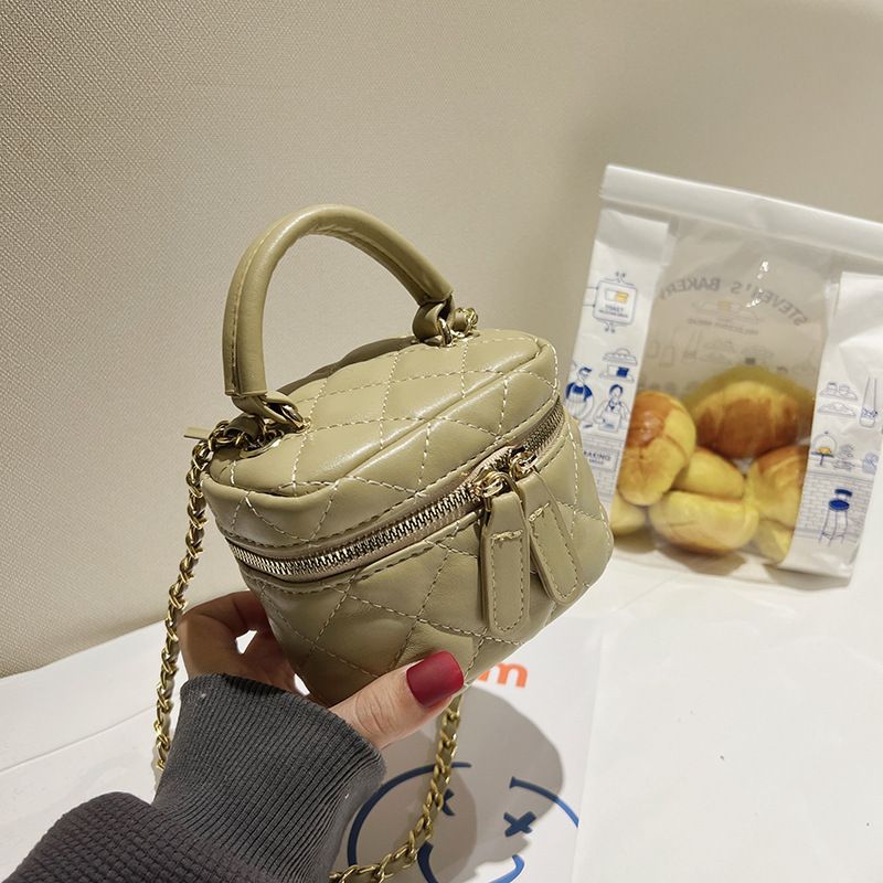Elegant Quilted Chain Box Bag - Stylish Mini Crossbody Handbag With Detachable Strap, Versatile For Day & Night (Green, Black, Pink, Beige, Sage)