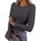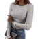 European and American Cross Border Νέο γυναικείο μακρυμάνικο ελαστικό μπλουζάκι με στρογγυλή λαιμόκοψη Slim Casual Basic μπλουζάκια