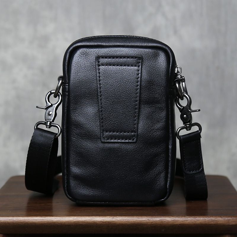 New Top Layer Cowhide Phone Bag for Men, Single Shoulder Crossbody Mini Small Bag, Large Capacity Genuine Leather Phone Pouch