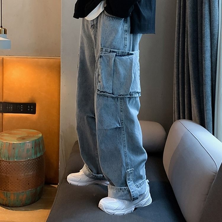 Fallen wide leg jeans for men, straight leg loose and versatile workwear, cropped pants for spring and autumn, dad pants, trendy brand ins