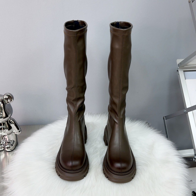 Fashionable long sleeved boots for women in autumn 2023, high sleeved knight boots with thick soles and increased back zippers, slim boots for children's leather boots
