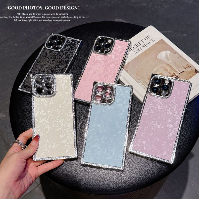 Four-corner Straight Edge Sticker Shell Pattern Suitable For IPhone 16 17 Pro Max Rhinestone 15 Square Phone Case