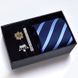 Gift Box Set】Men's 8cm Formal Business Tie Brooch Tie Clip Five-Piece Set Professional Blue and White Striped