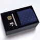 Gift Box Set】Men's 8cm Formal Business Brooch Tie Clip Five-Piece Set Professional Blue And White Striped
