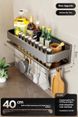 Gun Grey Kitchen Wall Organizer – No-Drill Spice Rack, Multi-Layer Shelf For Condiments, Utensils & Cutting Boards (Rustproof Carbon Steel)