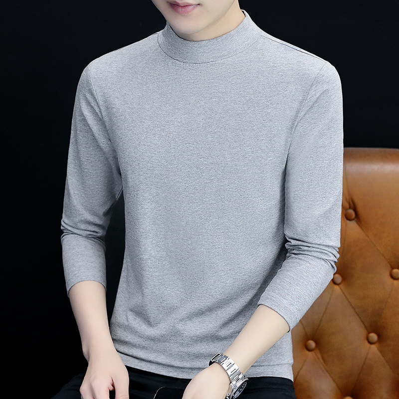 Autumn and winter 95 cotton solid color long sleeved T-shirt men's base shirt mid neck warm clothing