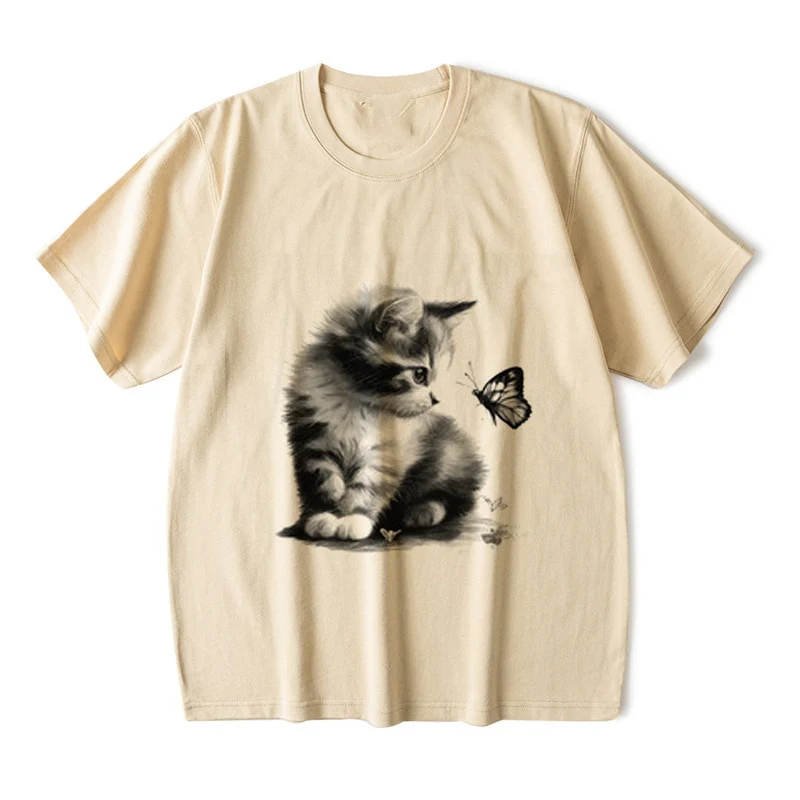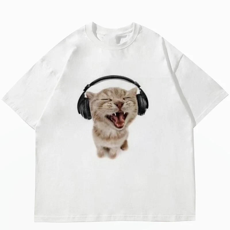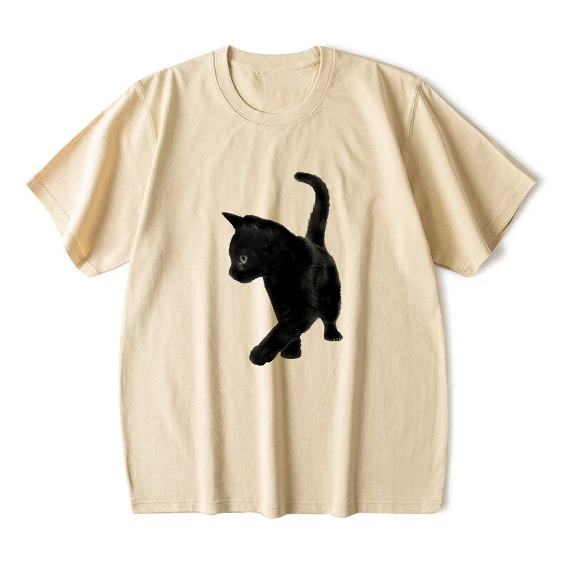 High Quality Cotton T-Shirt for Female Cute Cat Print T-Shirt for Female/male Haruku Fashion Couple Tops Y2K Oversized Tee