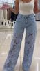 High Waist Wide Leg Pants For Women 2025 Summer Fashion Lace Trim Denim Flowy Trousers