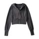 Αθλητικό μπουφάν αδυνατίσματος με ψηλή μέση Ins 2021 Φθινόπωρο Νέο προϊόν με διπλό φερμουάρ και κουκούλα για γυναίκες