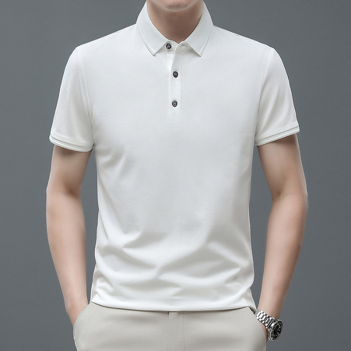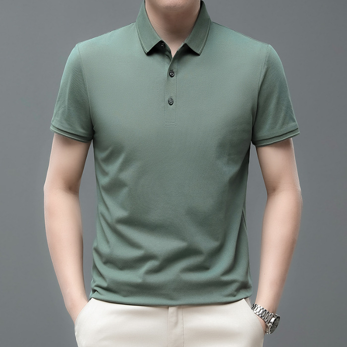 Kenoma 2024 Summer New Clean Edition Silk Cotton Shirt Simple Loose Short Sleeve Men's Polo T-Shirt
