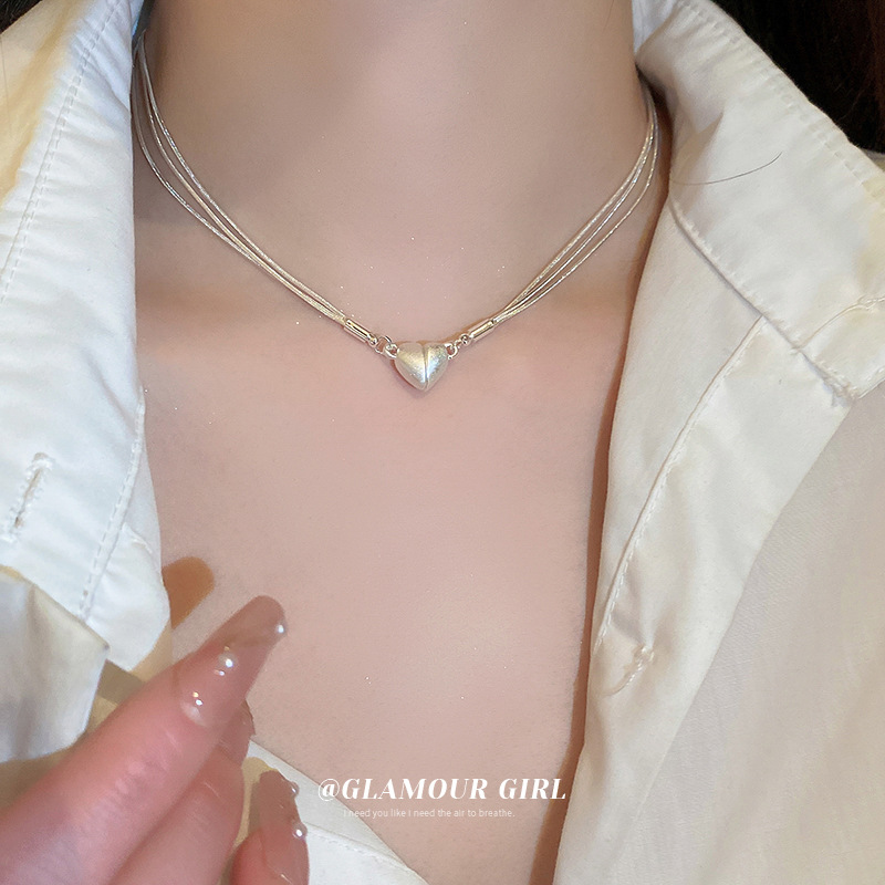 Korean Fresh Magnet Heart Multi-layer Necklace Personality Minimalist Design Choker Niche High-end Commuting Jewelry