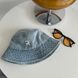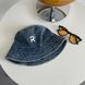 Korean version versatile washed denim letter basin hat for women, simple and casual, summer shading, revealing face, small fisherman hat, couple trend