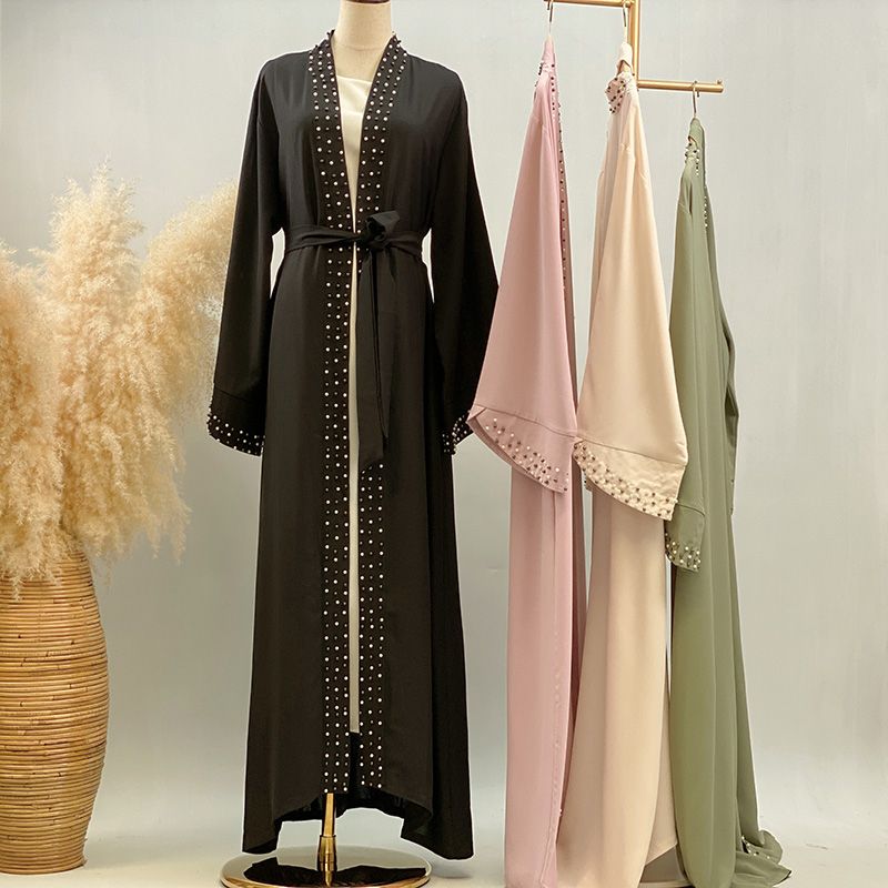 Latest Muslim Abaya Islamic Fashion Women Pearls Kimono Robe Modest Dress Long Elegant Cardigans Clothing Front Open Abaya
