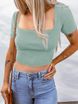 New Fashion Square Neck Ribbed Knitted Slim Fit Crop Top Short Sleeve Women's T-Shirt