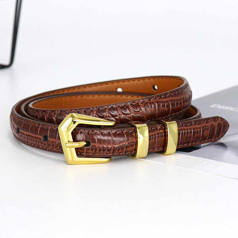 New Autumn and Winter Alloy Needle Button Women's Belt with Crocodile Gold Button and Jeans Skirt Thin Belt