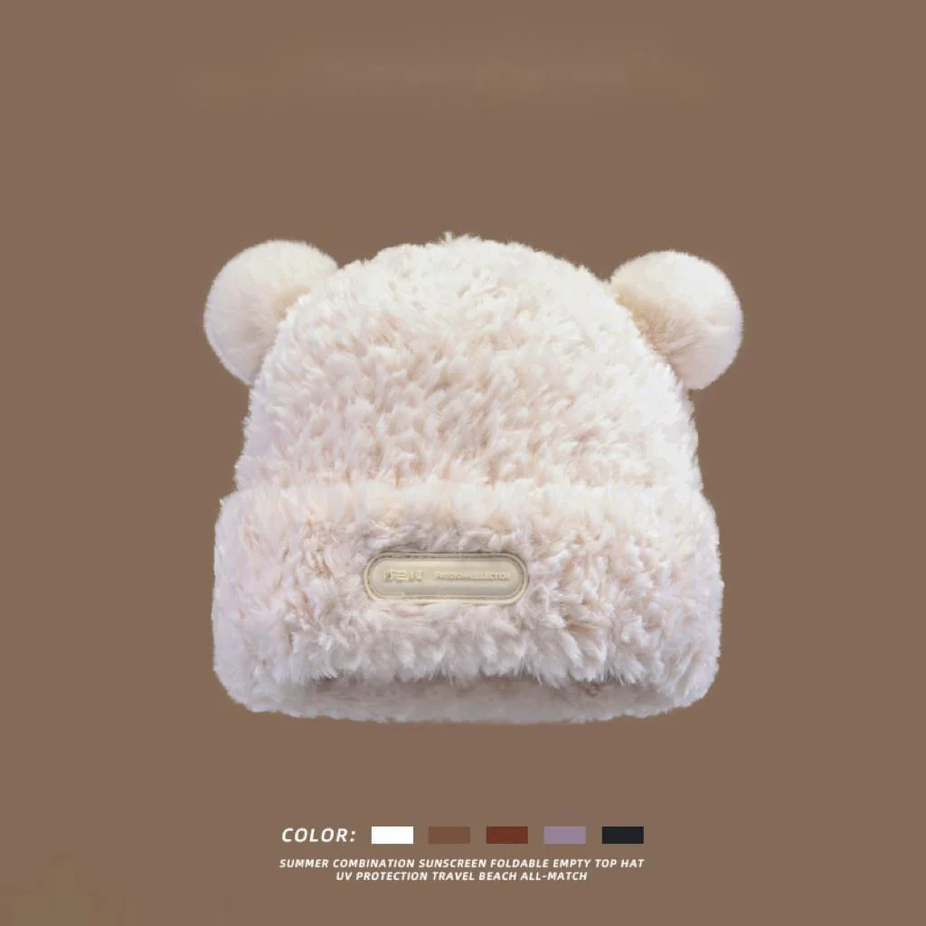 New Knitted Hat for Autumn and Winter Women's Versatile Knitted Headband Shows Small Face and Warm White Plush Cold Hat Big Headband