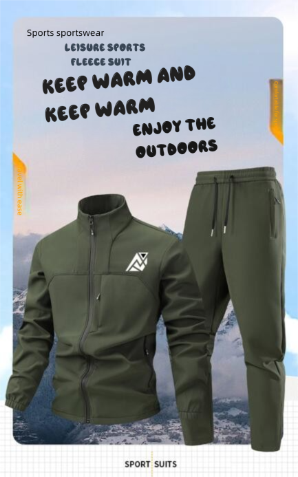 New Soft Shell Jacket Long Pants Windbreaker Stand Collar Autumn Winter Casual Men's Windproof Breathable Fleece Suit