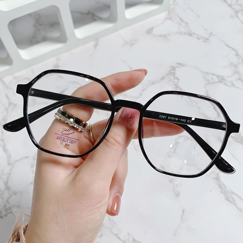 New TR90 Anti Blue Glasses with Polygonal Frame and Large Frame, No Degree Flat Light 8281 Eyes