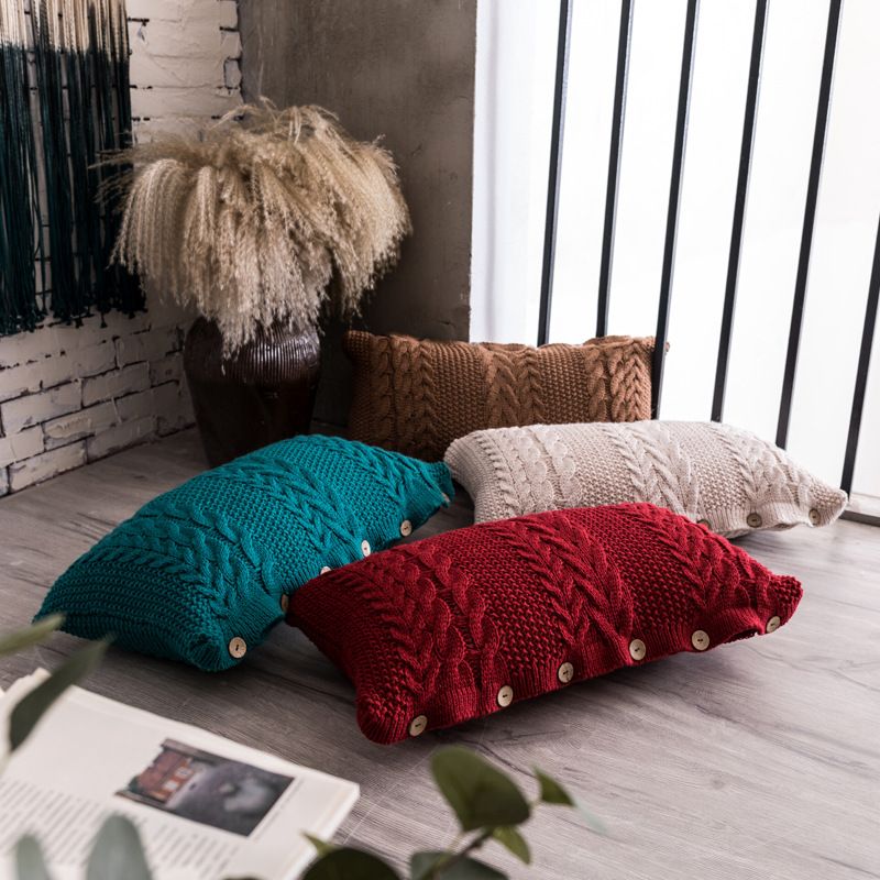 Σκανδιναβικό απλό μάλλινο κουμπάκι ορθογώνιο στη μέση υφασμένο μάλλινο κομοδίνο μεγάλο μαξιλάρι διακοσμητικό καναπέ μαξιλαράκι μακριάς ρίψης
