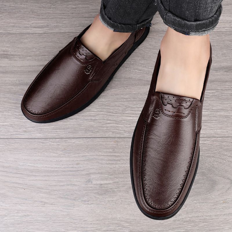 Old man's head, Le Fu shoe toe layer, cowhide for men, middle-aged and elderly, one foot casual shoes, soft soled men's leather shoes