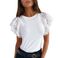 Γυναικεία μπλούζα σέξι μονόχρωμη δαντέλα στρογγυλή λαιμόκοψη κοντομάνικη